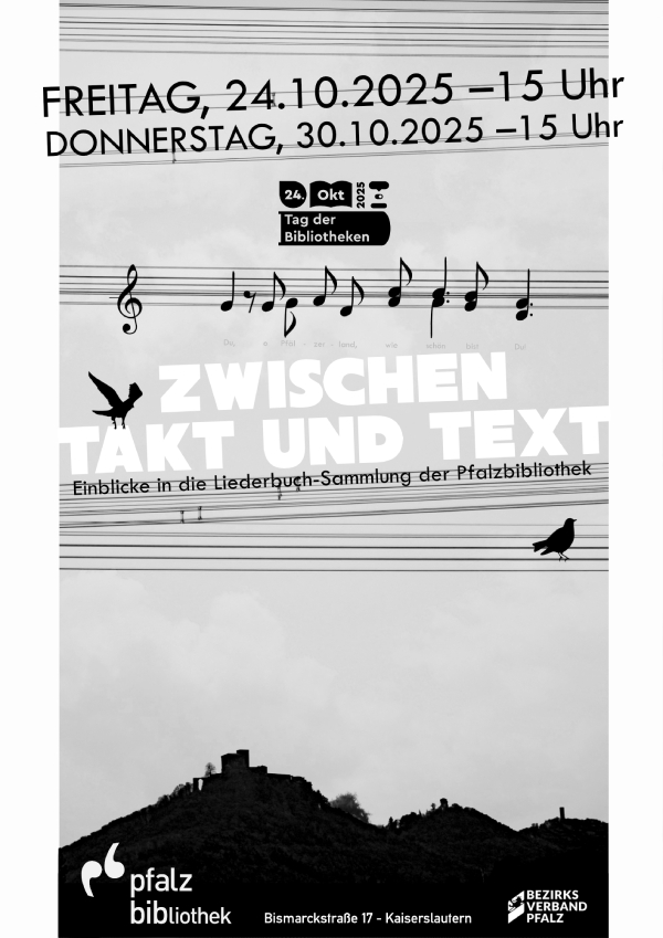 Termine, jeweils 15 Uhr: Freitag, den 24.10. (Tag der Bibliotheken) und Donnerstag, den 30.10. Eintritt frei. Vorherige Anmeldung erwünscht unter info@pfalzbibliothek.bv-pfalz.de oder 0631 3647-111. Die Plätze sind begrenzt. Für eine Gruppengröße von 3-10 Personen kann die Führung auch zu einem Wunschtermin gebucht werden.
